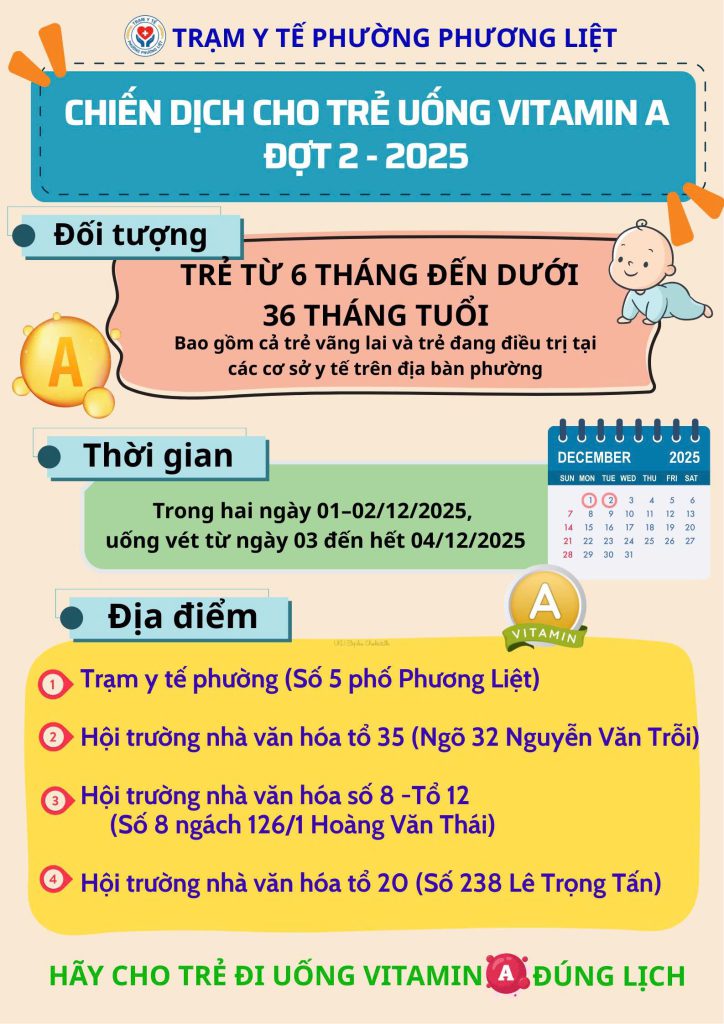 PHƯỜNG PHƯƠNG LIỆT TRIỂN KHAI CHIẾN DỊCH UỐNG BỔ SUNG VITAMIN A ĐỢT 2 NĂM 2025