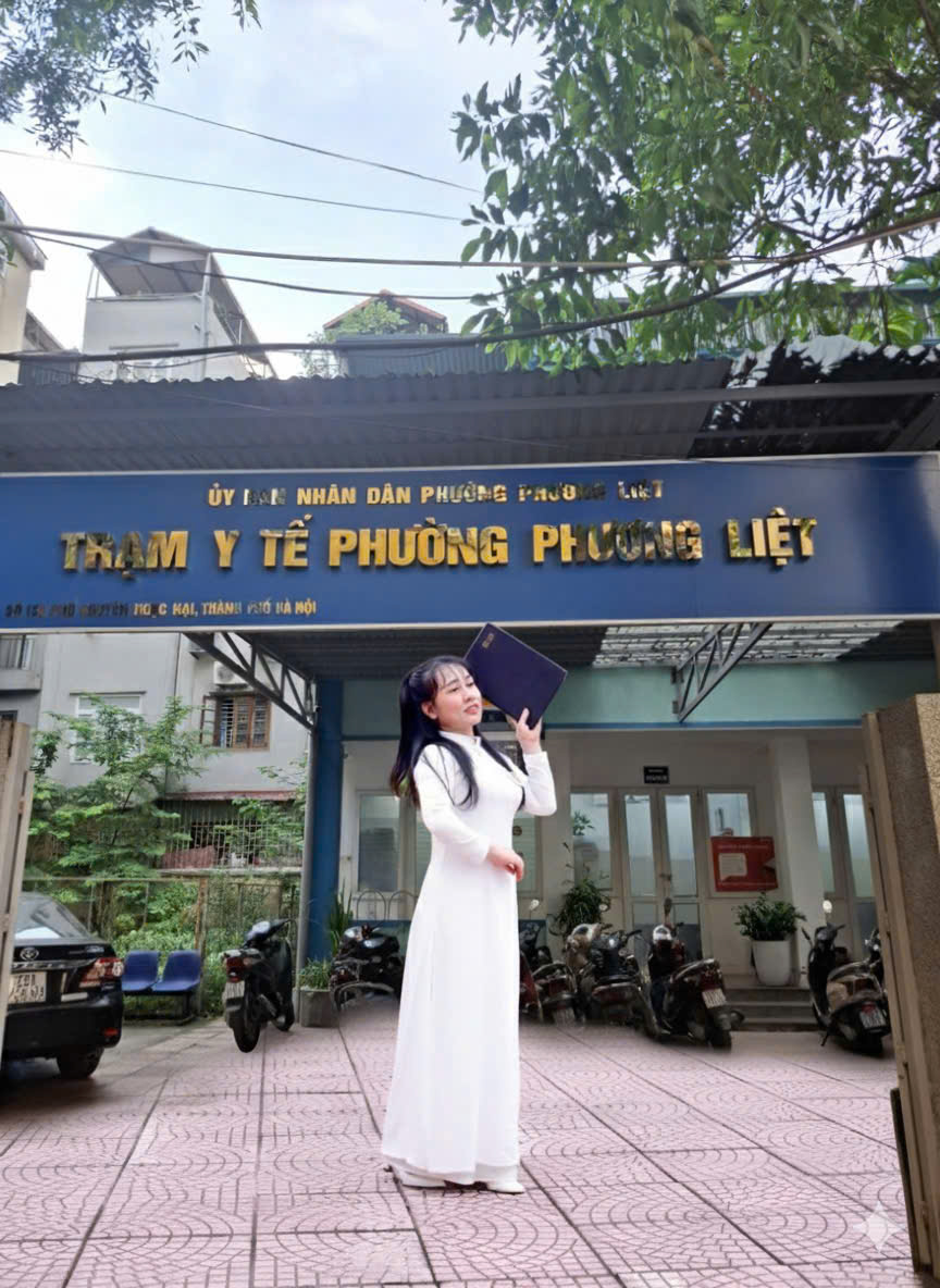 “Trong tà áo dài trắng tinh khôi, hình ảnh cô gái đứng trước cổng Trạm Y tế Phường Phương Liệt không chỉ là một khoảnh khắc kỷ niệm đẹp, mà còn là biểu tượng của niềm tự hào và sự khởi đầu. Ánh mắt hướng lên trời cao như chứa đựng bao ước mơ và hoài bão về một sự nghiệp chăm sóc sức khỏe cộng đồng. Chiếc áo dài truyền thống hòa quyện với không gian y tế hiện đại, thể hiện sự tiếp nối giữa văn hóa dân tộc và trách nhiệm cao cả của người cán bộ y tế . Đây là bước chân đầu tiên trên con đường phụng sự, hứa hẹn một hành trình ý nghĩa và tràn đầy cống hiến”