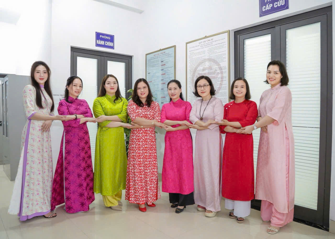 “Dưới sắc áo dài truyền thống, các thành viên khoa Khám bệnh tay trong tay thể hiện tinh thần đoàn kết, yêu thương và trách nhiệm. Mỗi người một vai trò, một nhiệm vụ, nhưng cùng chung một trái tim , vì sự phát triển bền vững của tập thể và sức khỏe của người bệnh”