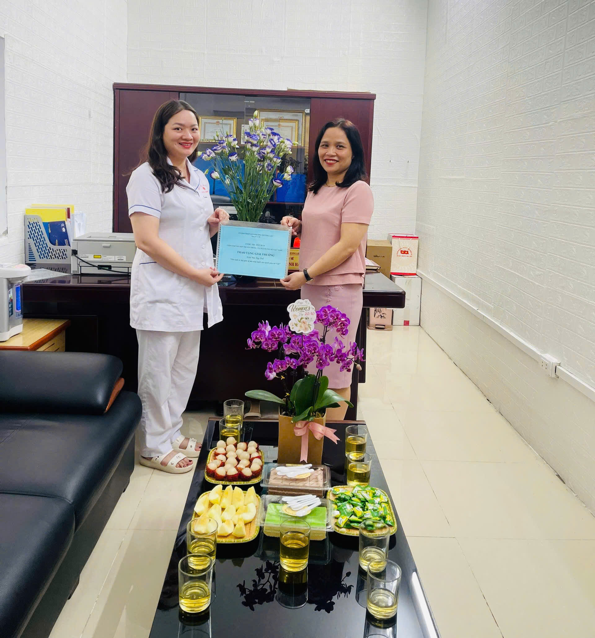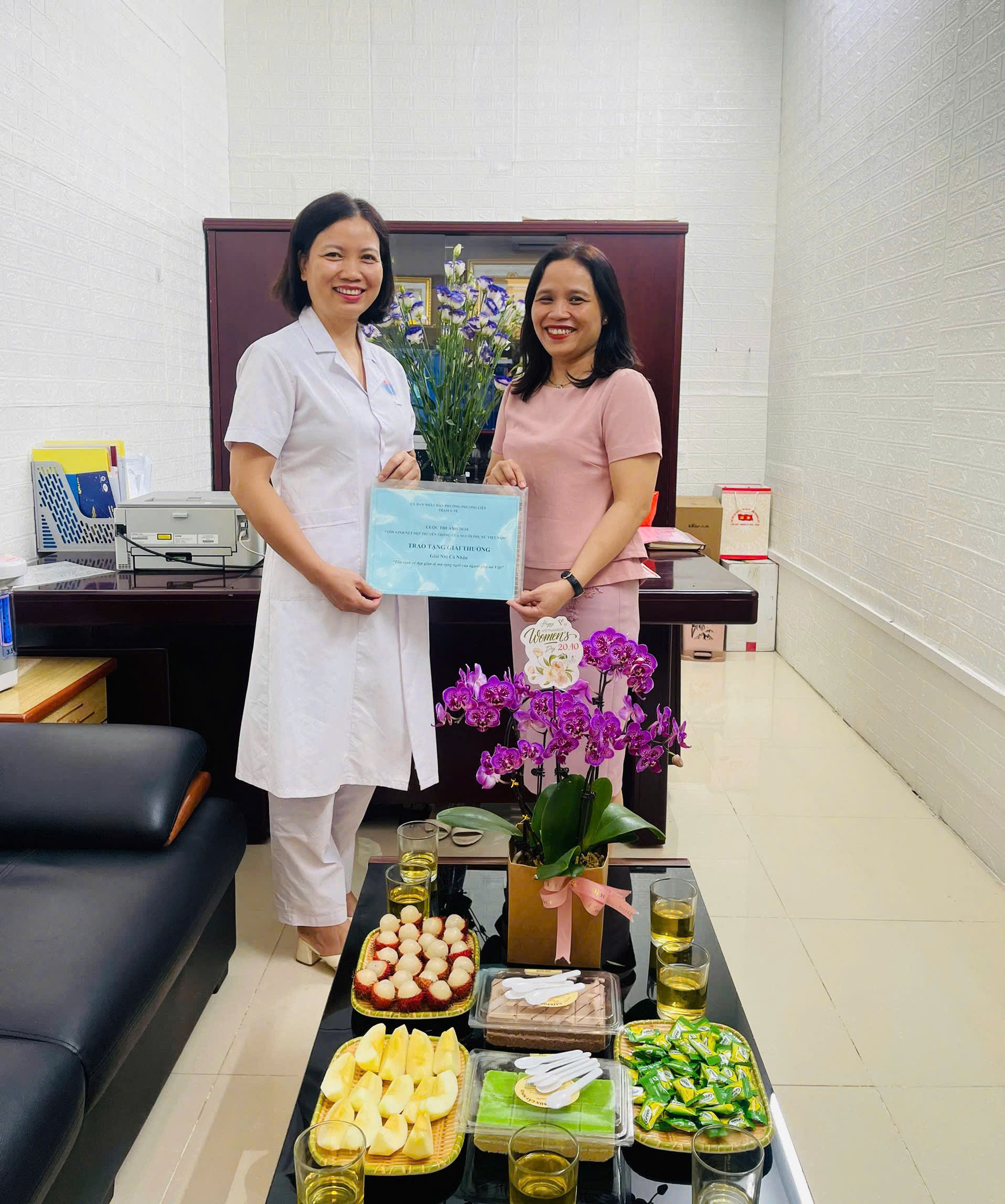 Đ/c Đặng Thị Thanh Hà, Bí thư Chi bộ, Trưởng Trạm Y tế, đ/c Nguyễn Thị Hường, Phó Bí thư Chi bộ, Phó trưởng Trạm Y tế