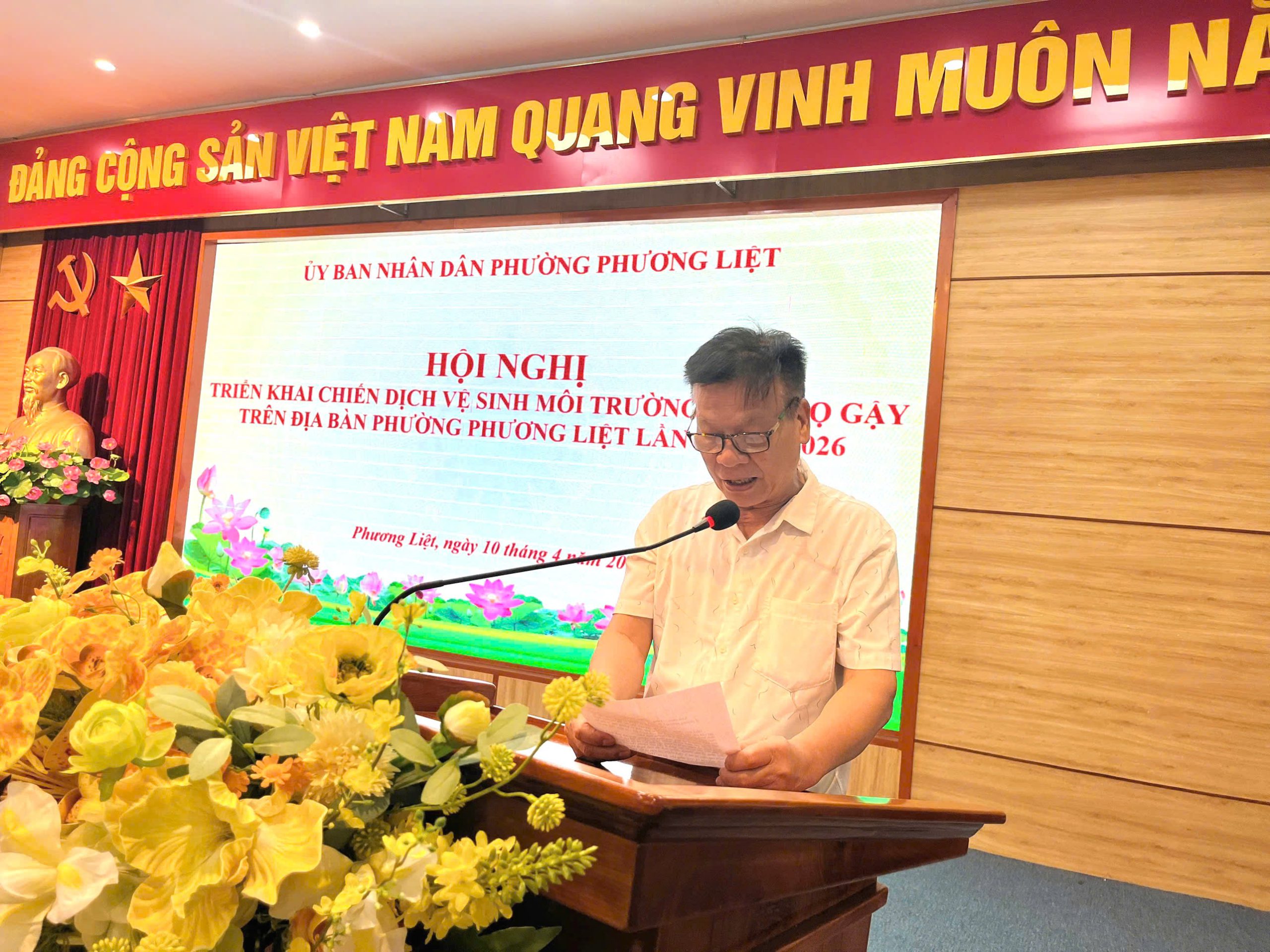 Sáng ngày 10/04/2026, tại hội trường UBND phường Phương Liệt, Trạm Y tế phường đã tổ chức Hội nghị triển khai – phát động Chiến dịch vệ sinh môi trường, diệt bọ gậy và phun hóa chất diệt muỗi trưởng thành, chủ động phòng, chống dịch bệnh cho các Tổ trưởng tổ dân phố, đội trưởng đội xung kích diệt bọ gây và các lực lượng huy động tham gia chiến dịch…Chủ trì Hội nghị đồng chí Đặng Thị Thanh Hà – Bí thư Chi bộ – Giám đốc Trạm Y tế phường, Phó Trưởng Ban chỉ đạo CSSK nhân dân, phòng, chống dịch bệnh phường Phương Liệt cùng với sự tham gia của tổ trưởng 62 tổ dân phố trên địa bàn phường.