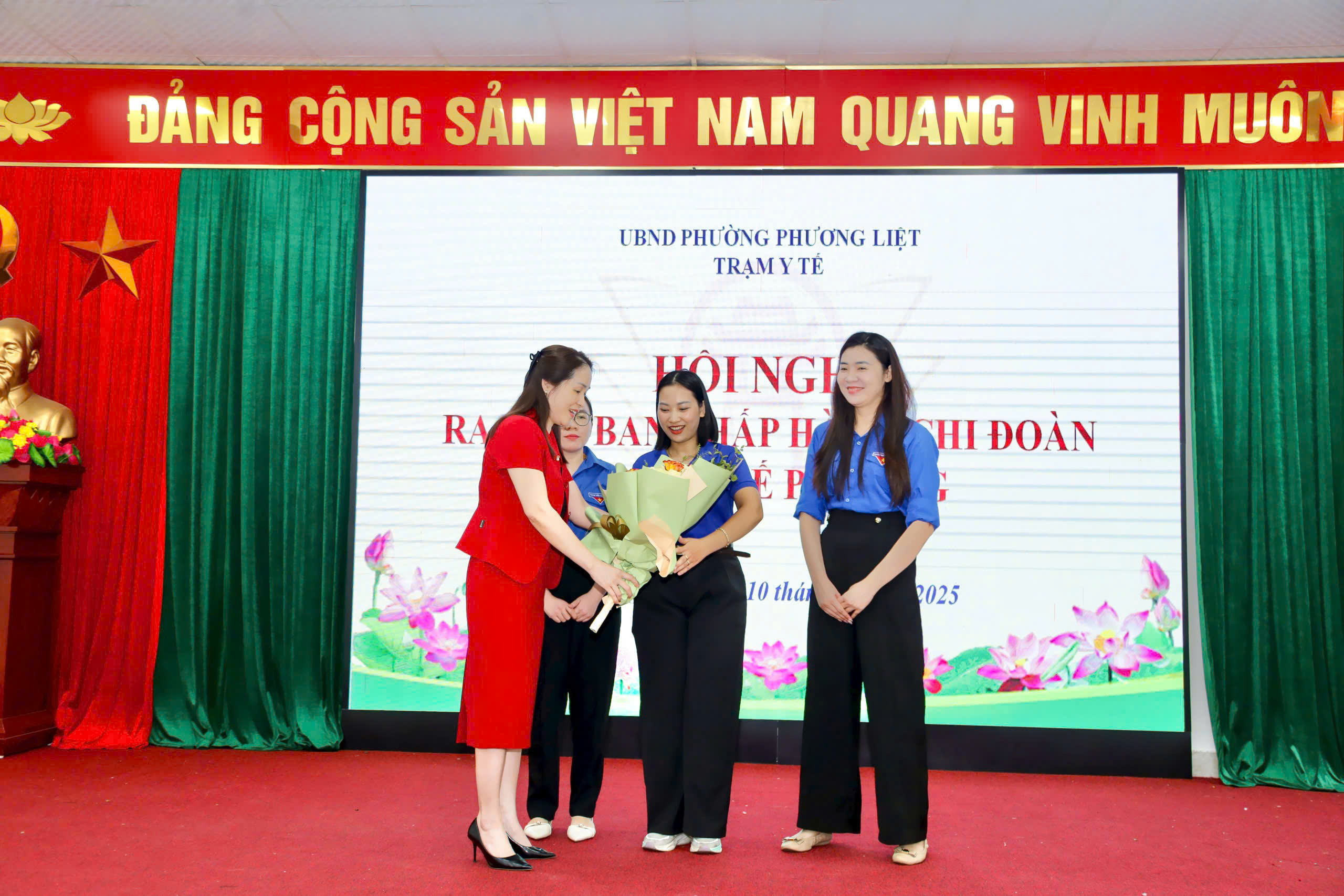 Lãnh đạo Trạm Y tế tặng hoa chúc mừng Ban chấp hành Chi đoàn lâm thời nhiệm kỳ 2025 -2027