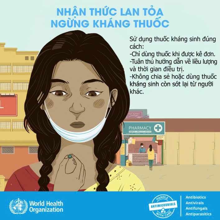 - Không chia sẻ, không tự mua kháng sinh.